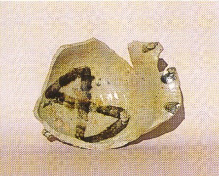 畳付回転削り。鉄絵有り |